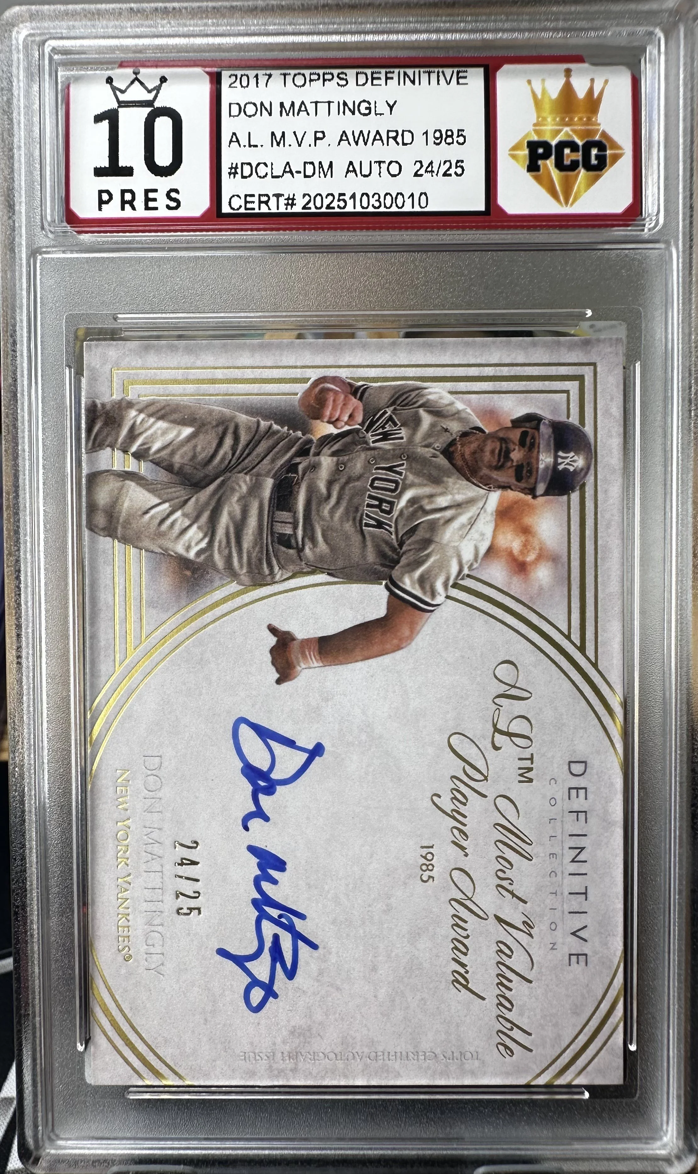10 prestigious (highest grade) 2017 topps defentive don mattingly #dcla-dm auto #24/25CERT#20251030010